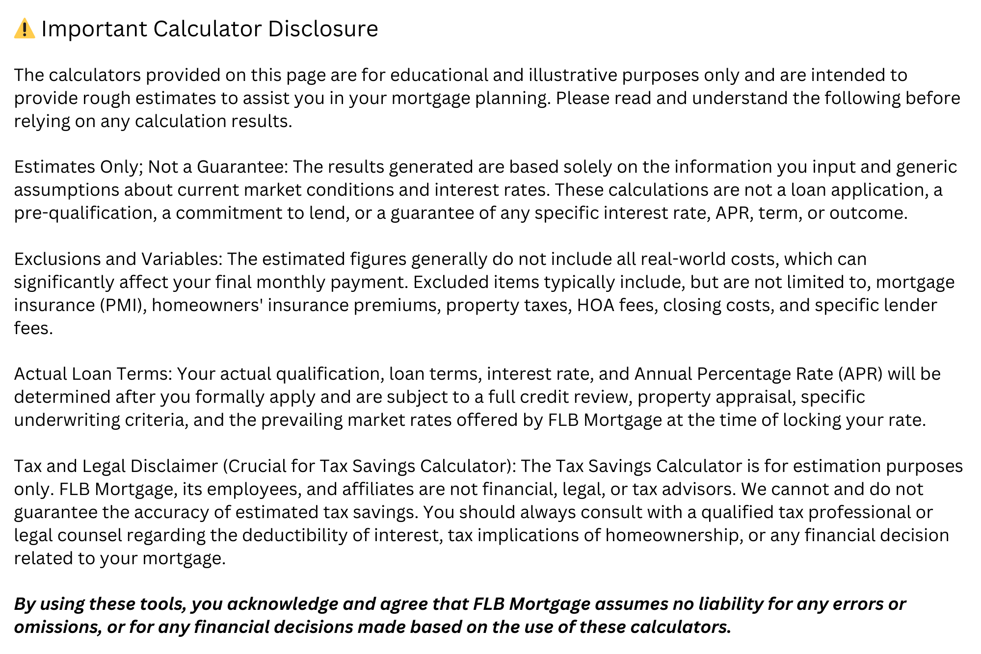 The following online calculators serve as helpful tools during the mortgage process.